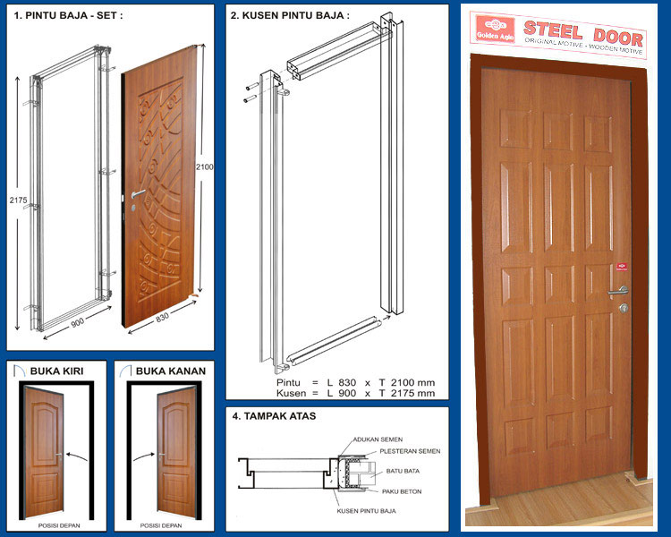 Kusen, L, 900 x T, 2175mm, lubang tembok harus L, 960 x T, 2210mm.